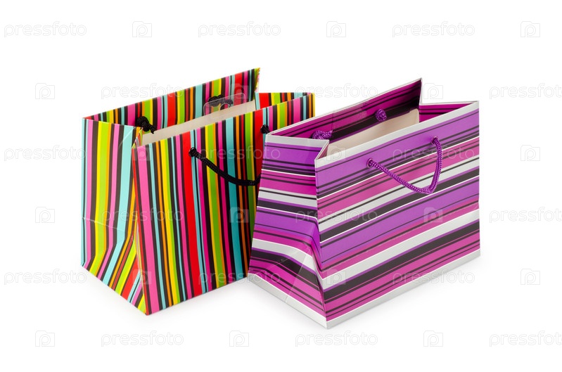 Яркие бумажные пакеты на белом