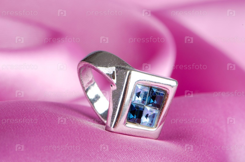 Кольцо крупным планом на розовом фоне