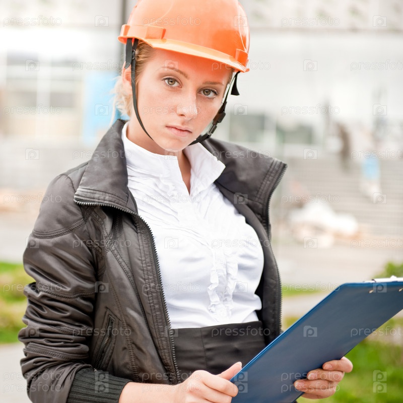 Молодая женщина-архитектор на фоне здания