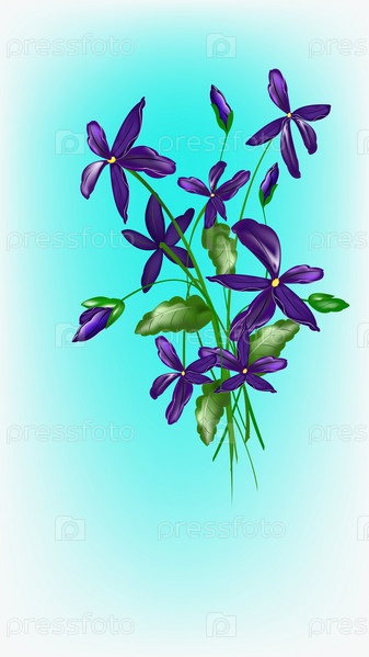 Нежный букет фиолетовых декоративных цветов на голубом фоне
