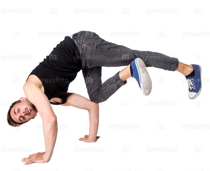 Брейк-данс, стойка на белом фоне