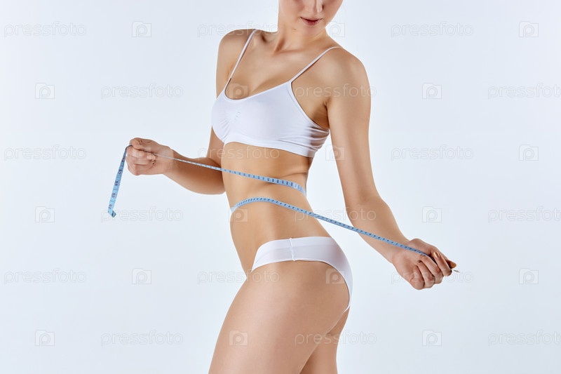 Женщина, держащая сантиметр, измеряя совершенную форму своего тела