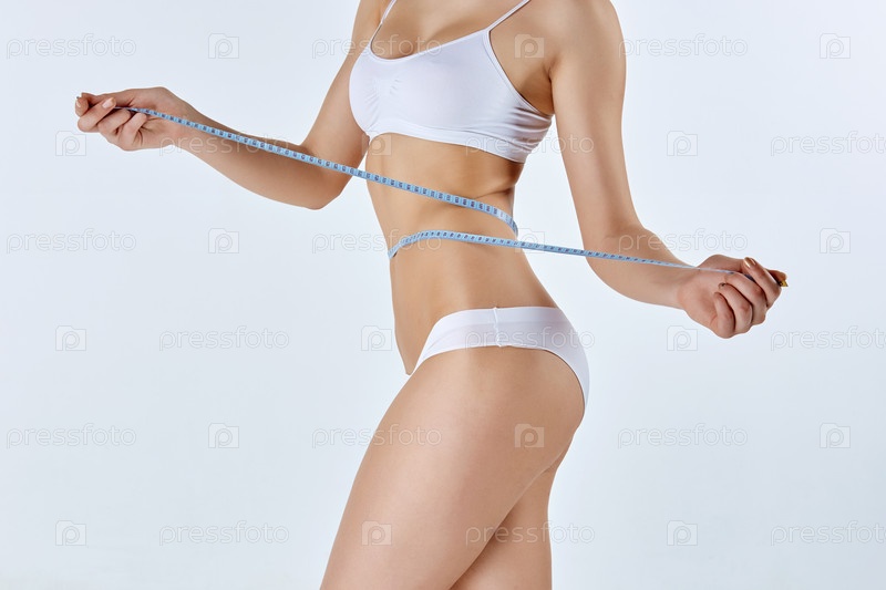 Женщина, держащая сантиметр, измеряя совершенную форму своего тела