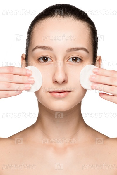 Девушка ухаживает за своей кожей с помощью ватного диска