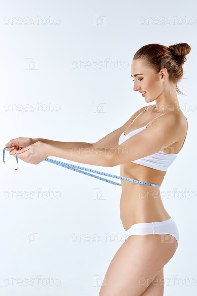 Женщина измеряет лентой совершенную форму ее красивого тела