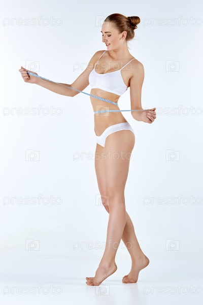 Женщина измеряет лентой совершенную форму ее красивого тела
