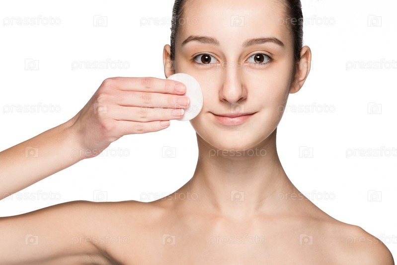Девушка ухаживает за своей кожей с помощью ватного диска