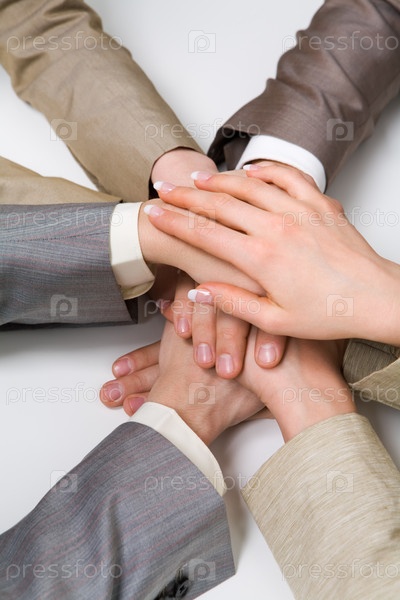 Изображение деловых людей с руками друг на друга, символизирующих поддержку и власть
