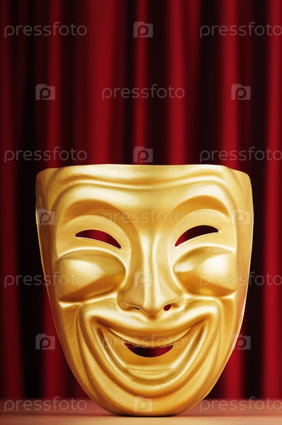 Театральная маска на фоне занавеса