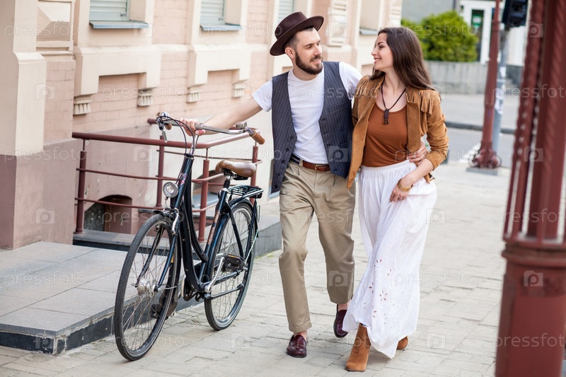 Молодая пара с велосипедами на прогулке