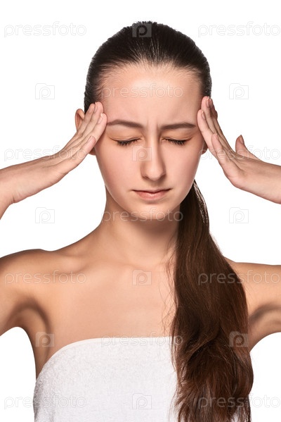 Красивая молодая женщина с головной болью