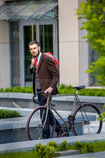 Красивый бизнесмен с велосипедом