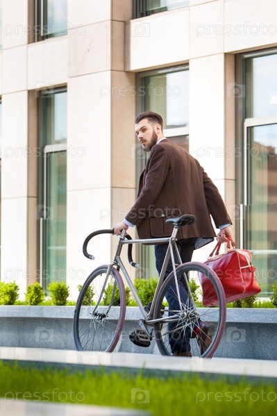 Красивый бизнесмен с велосипедом
