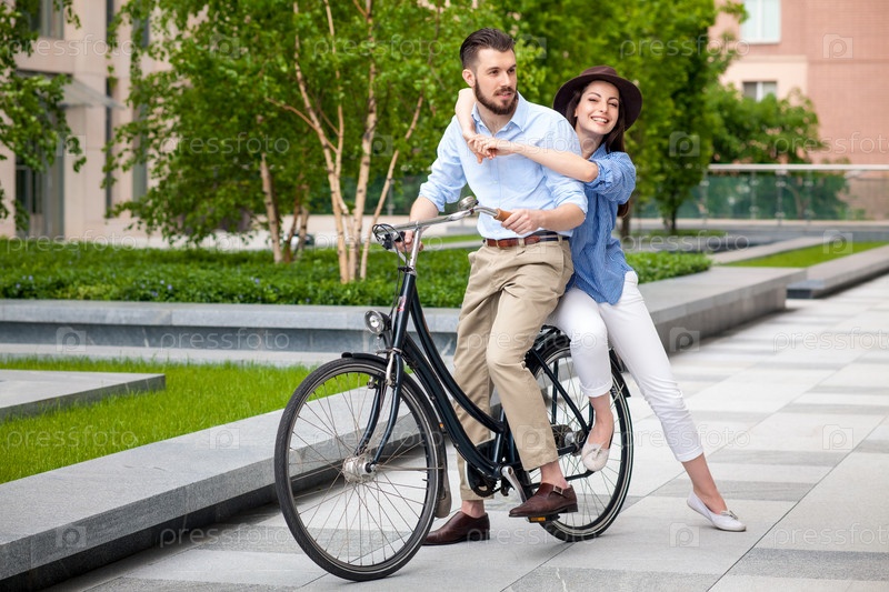Молодая пара с велосипедом