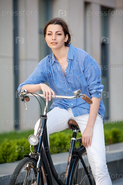 Девушка с велосипедом на улице