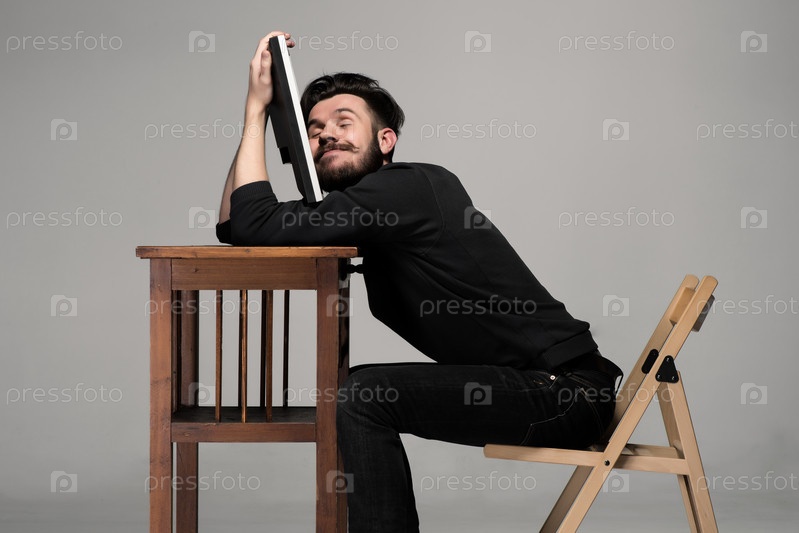 Бизнесмен спит на компьютере