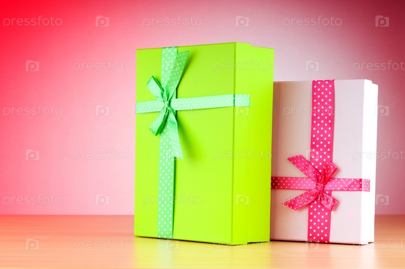 Подарочные коробки на красном фоне