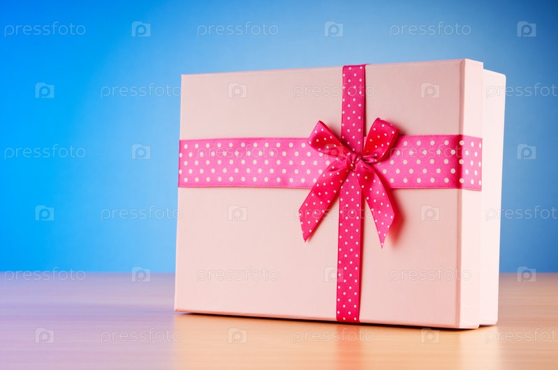 Подарочная коробка на голубом фоне