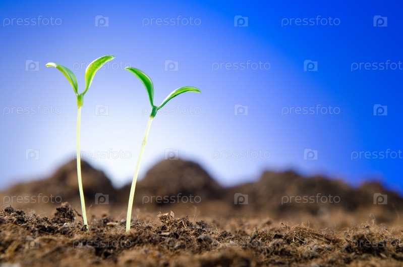 Зеленые ростки на фоне неба