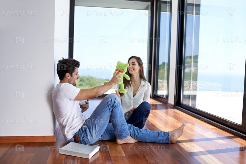 Молодая пара весело проводит время в загородном доме