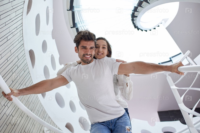 Молодая пара весело проводит время в загородном доме