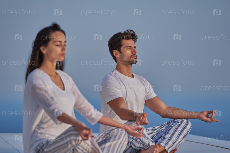 Молодая пара практикует йогу