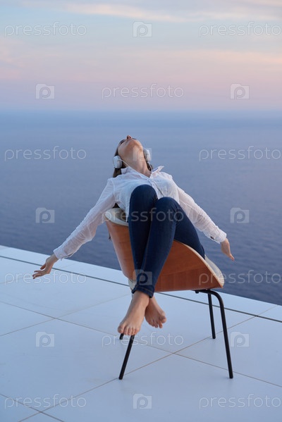 Молодая женщина наслаждается закатом