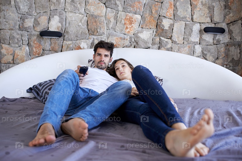 Молодые дома вдвоем на кровати