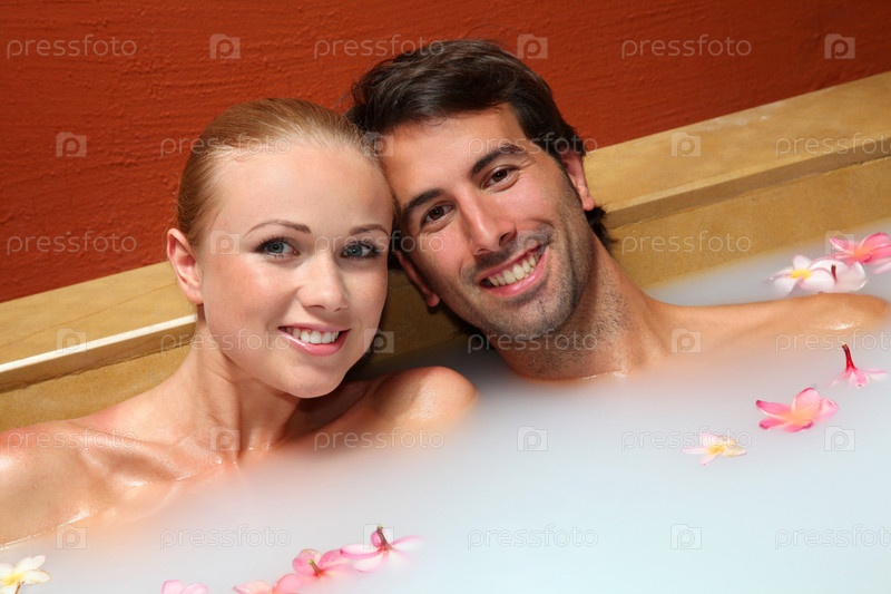 Пара расслабляется в гидромассажной ванне с молоком
