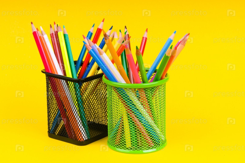 Цветные карандаши в стаканах