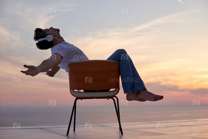 Мужчина слушает музыку на балконе