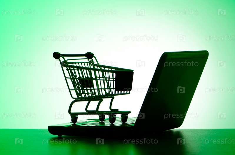 Тележка из супермаркета и ноутбук