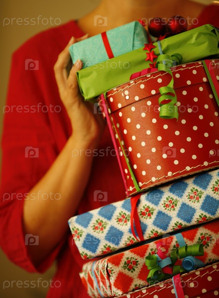 Женщина, держащая рождественские подарки