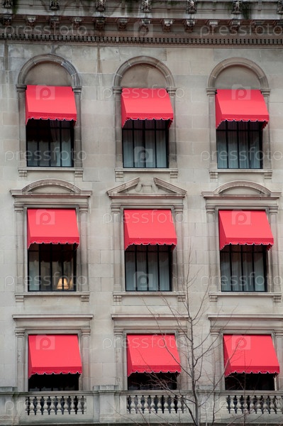 Красные тенты на здании в Бостоне, штат Массачусетс, США