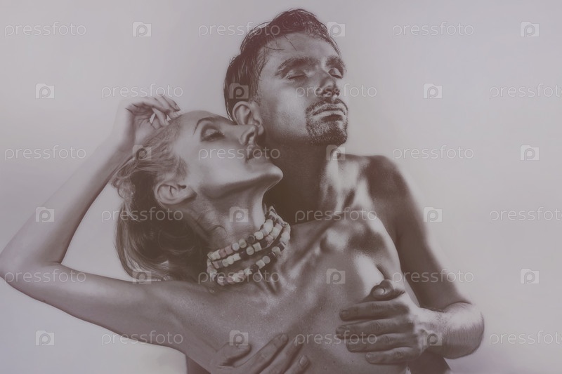 Черно-белый портрет молодого человека с девушкой
