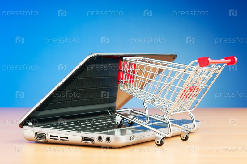 Тележка из супермаркета и ноутбук