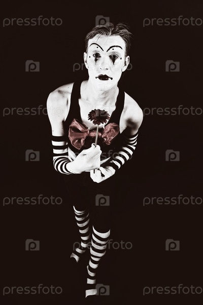 Театральные смешной клоун с большим красным цветком