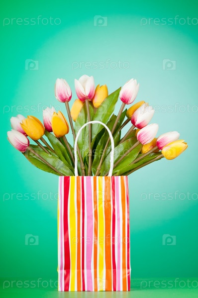 Подарочный пакет и тюльпаны
