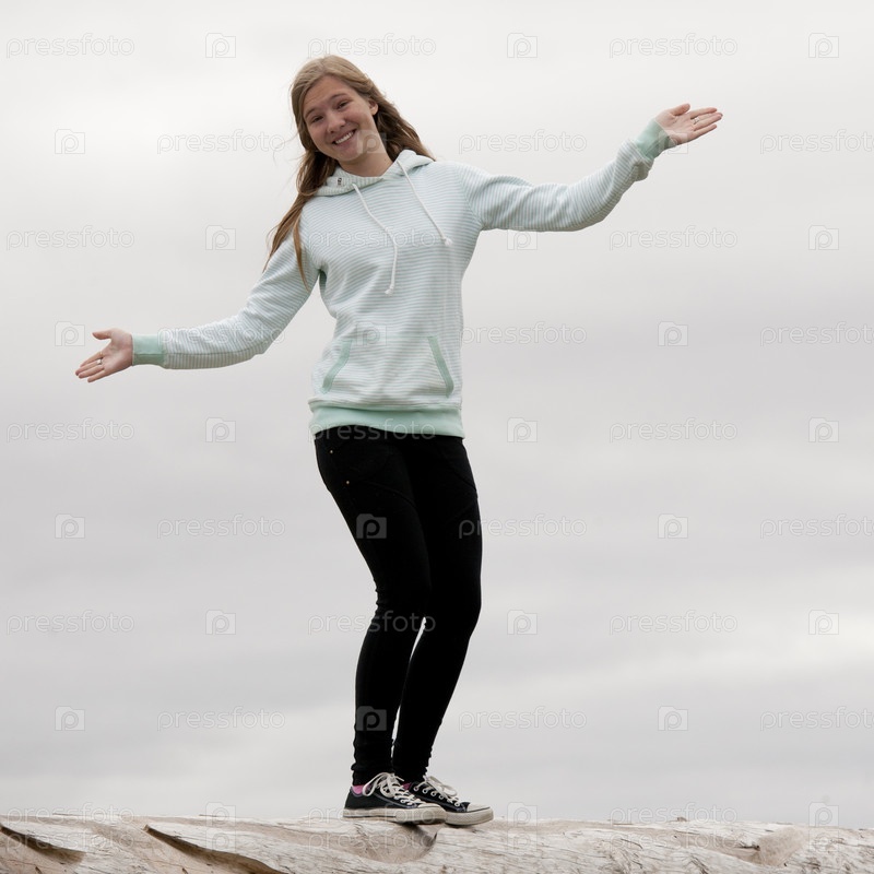 Девушка балансирует на скале