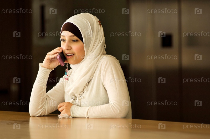 Мусульманская женщина говорит по телефону