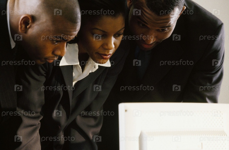 Портрет коллег, глядящих на экран компьютера