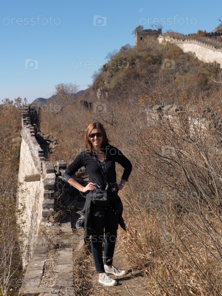 Женщина, стоящая на Великая китайская стена, Пекин, Китай