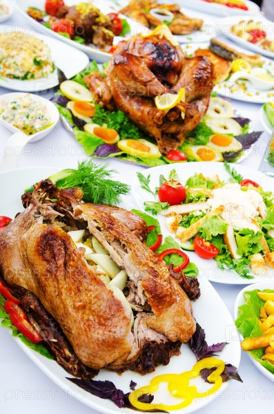 Жареная птица на сервированном столе