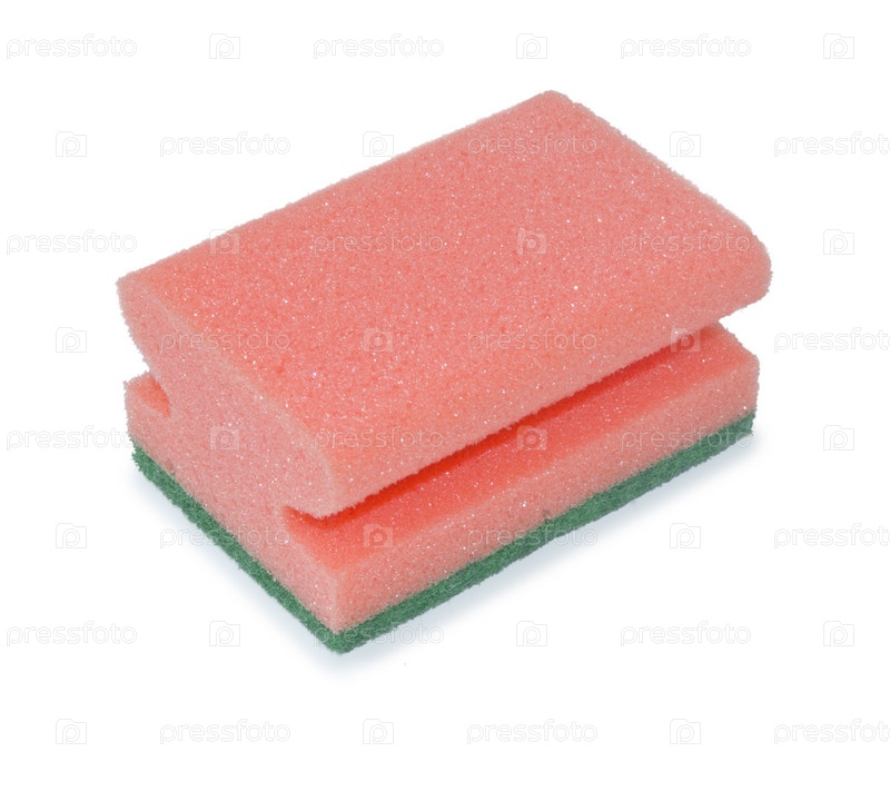 Губка для мытья посуды изолировано на белом фоне с пространством для текста