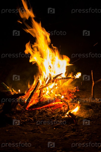 Пламя костра ночью