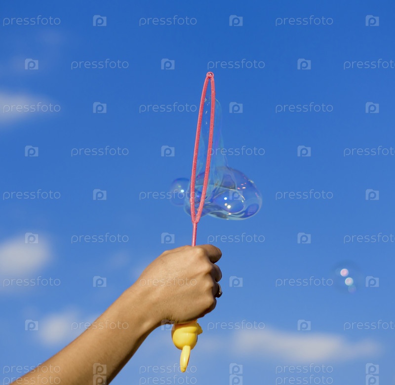 Красочные мыльные пузыри на фоне голубого неба