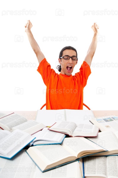 Студент перед учебниками