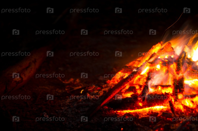 Пламя костра ночью