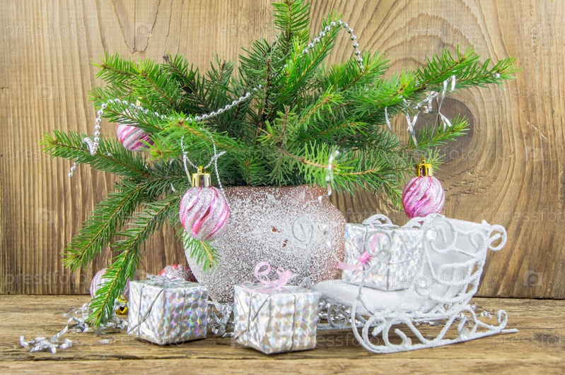 Рождественская композиция на деревянном фоне