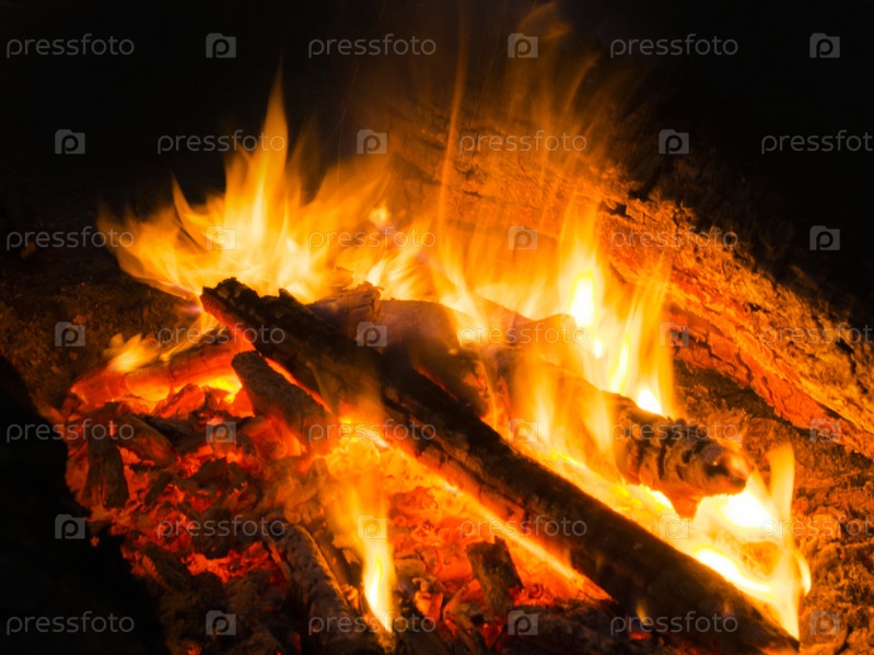 Пламя костра ночью